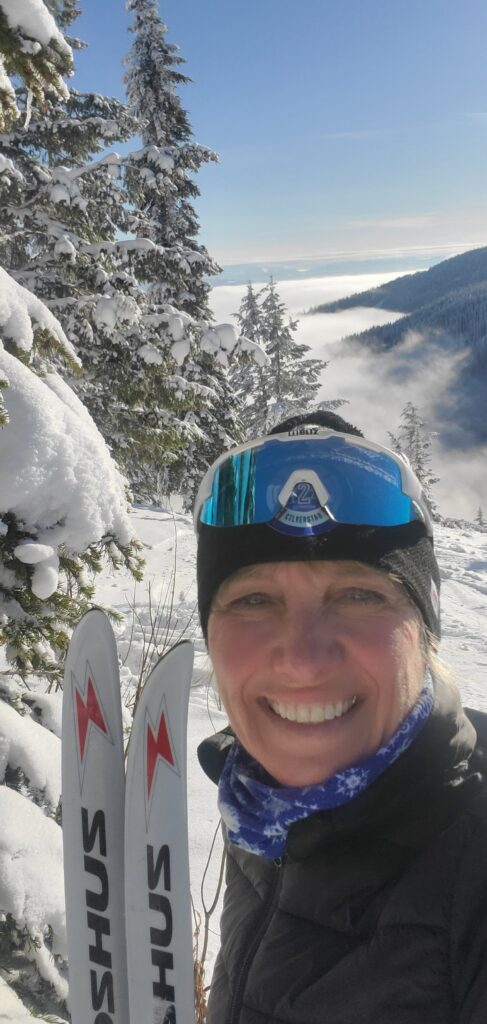 Favorite Drill: The ‘coffee cup drill’ to help feel weight transfer onto one ski at a time. It’s about finding your balance by aligning your nose, knees, and toes over each ski while pretending to bring up your hand to have a drink of coffee.